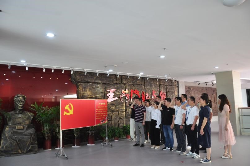 党员们怀着无比崇敬的心情来到王荷波纪念馆,并在纪念馆大厅重温入党誓词。